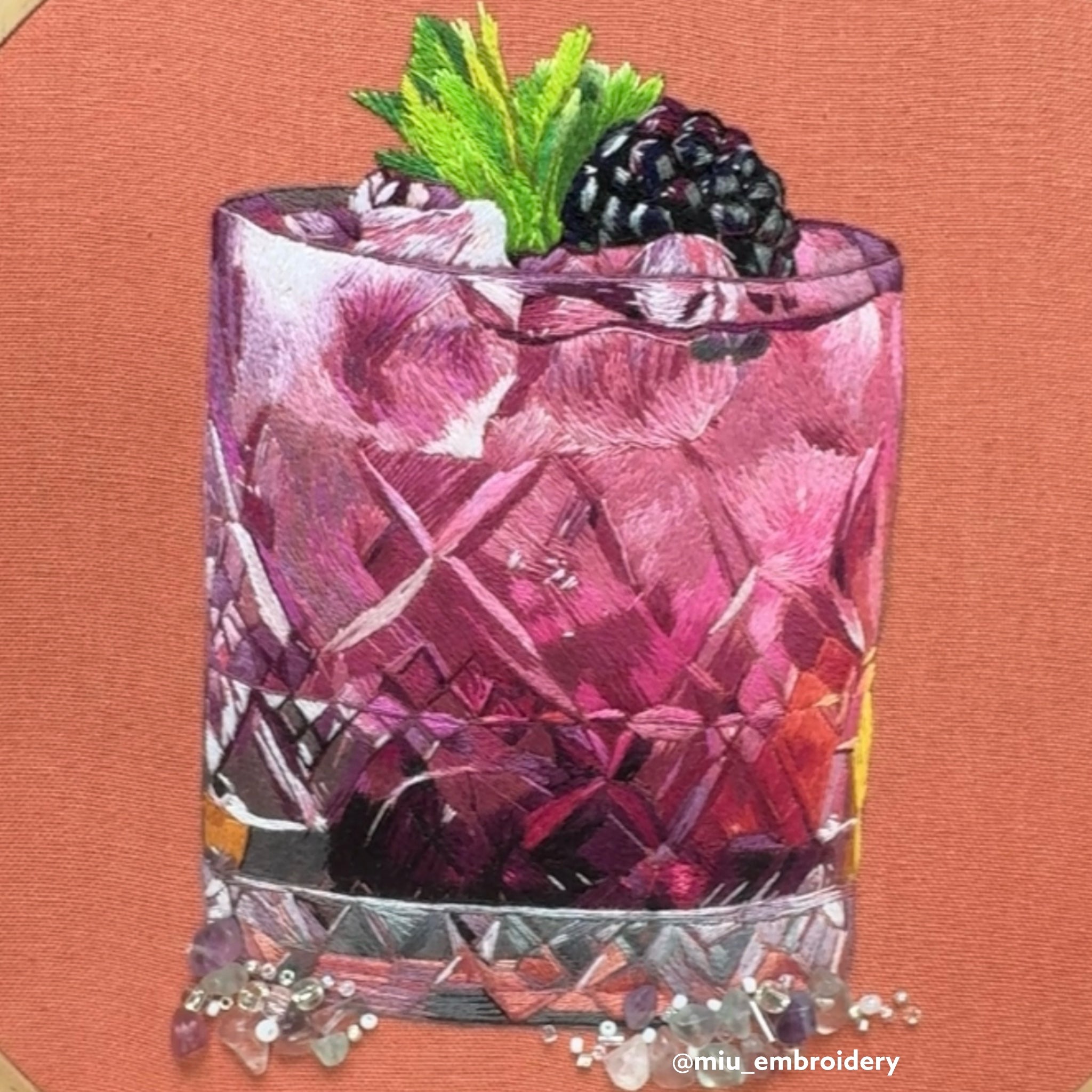 Original Thread Painting - Blackberry Cocktail - Embroidery Framed